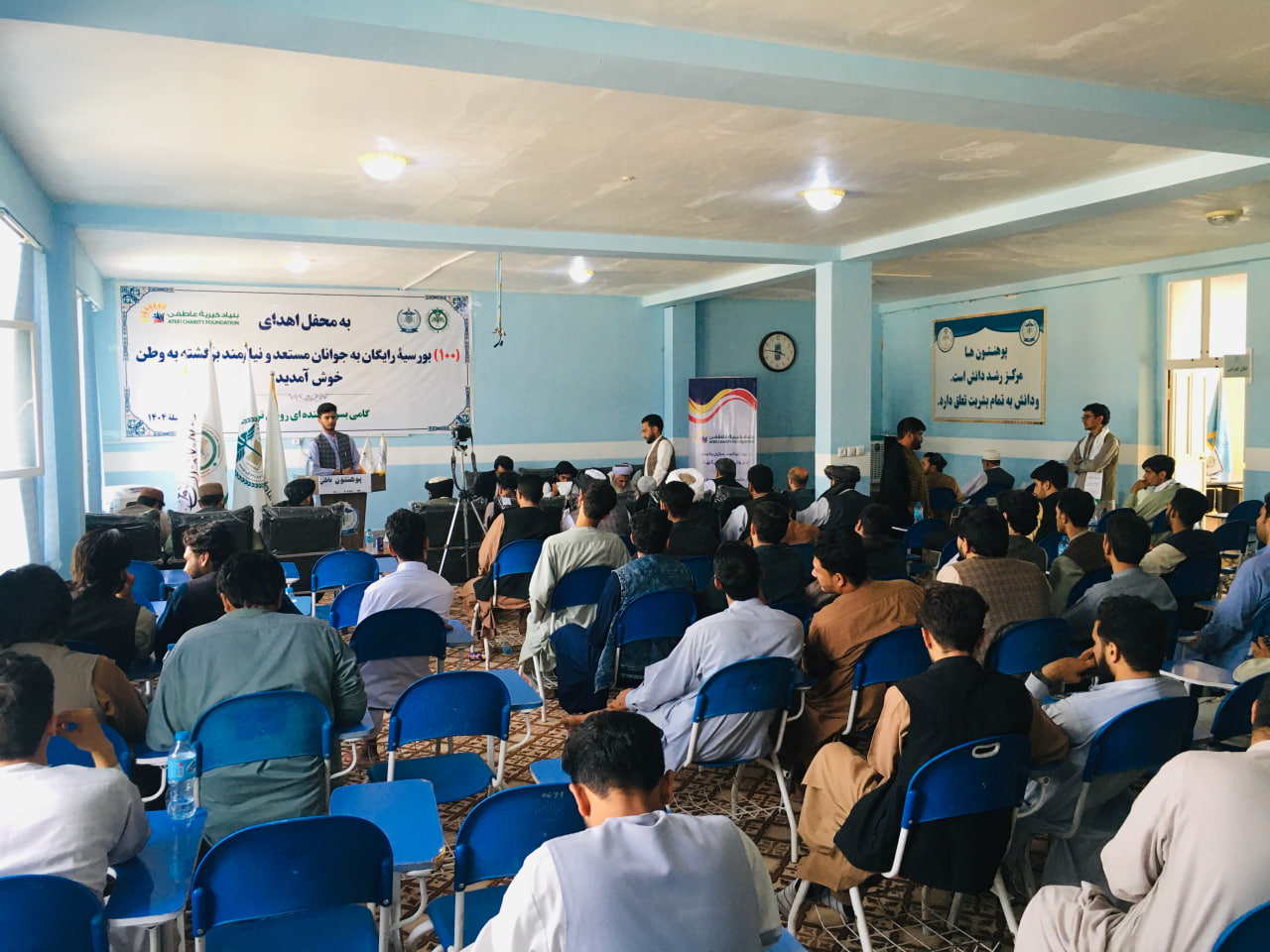 به تاریخ 31 سنبله 1404هـ – ش بنیاد خیریه عاطفی، طی یک محفل ویژه در سالون کنفرانس های پوهنتون عاطفی، 100 بورسیه رایگان تحصیلی را به جوانان نیازمند و برگشته به وطن اعطا نمود.
