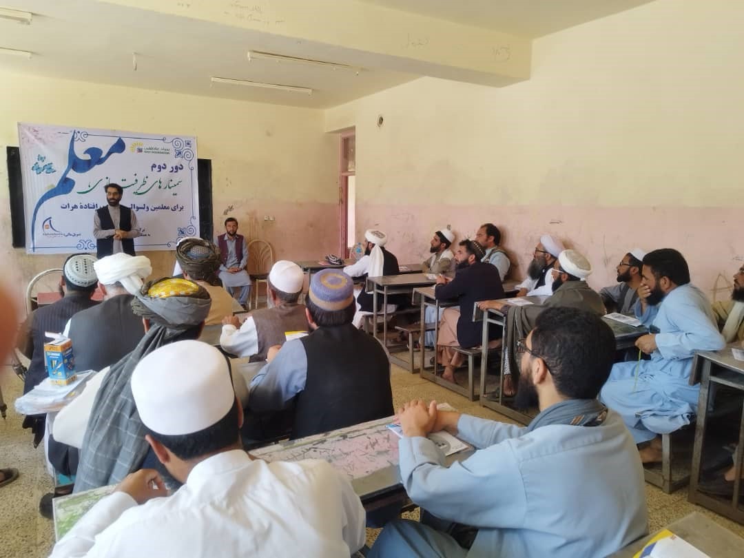 بنیادعاطفی با همکاری ریاست معارف ولایت هرات سمینار آموزشی به هدف بلند بردن کیفیت تدریس برای معلمین مکاتب ولسوالی کهسان ولایت هرات برگزار کرد.