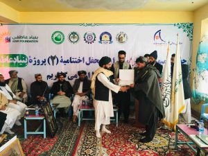 در اخیر، مسئولین ادارات همکار از سوی بنیادعاطفی مورد تقدیر قرار گرفته و تصدیق نامه های (96) تن فارغین رشته های (خیاطی و تعمیر مبایل) توسط علما و مسئولین امارتی توزیع گردید.