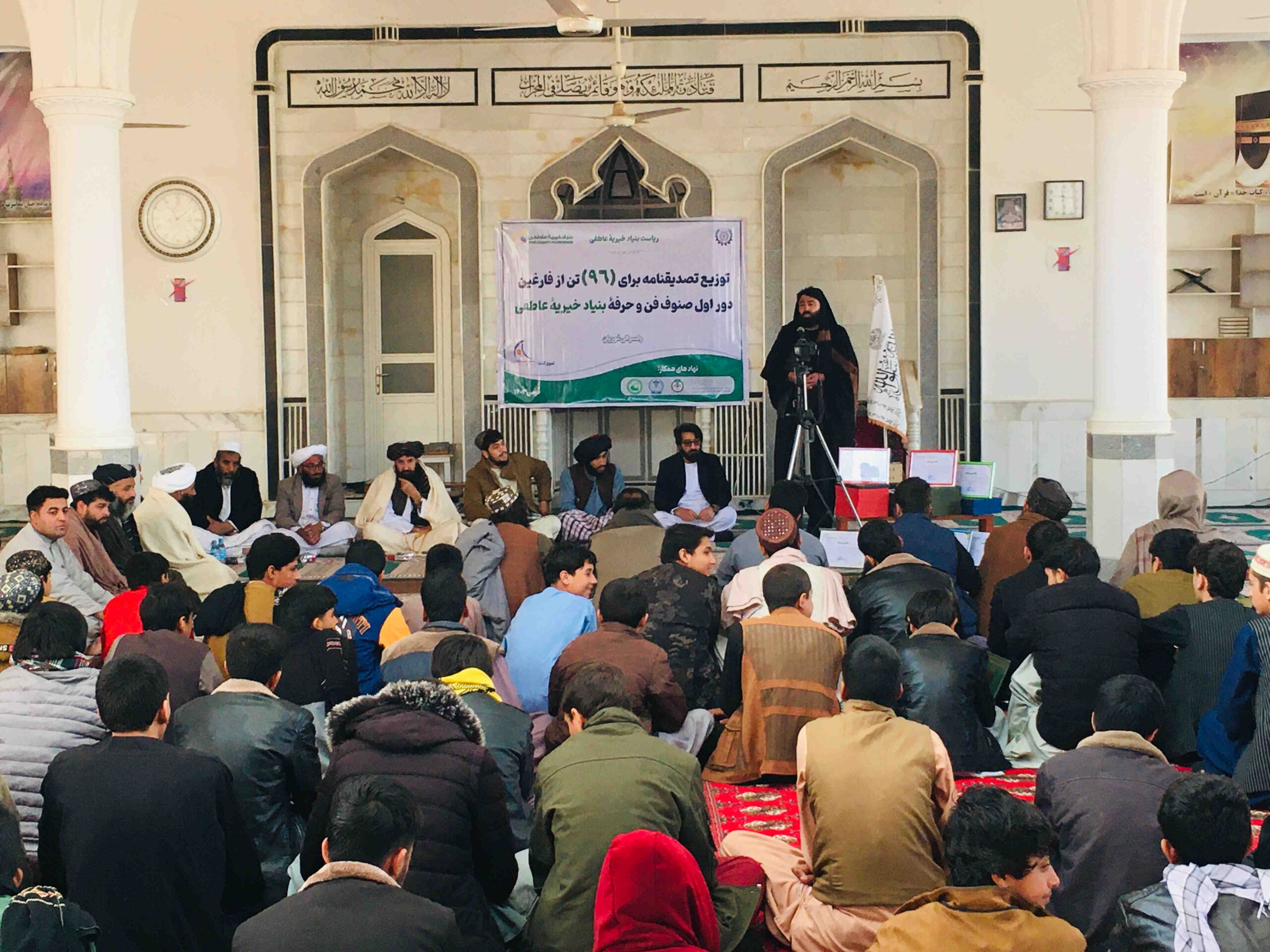 صبح امروز 5 قوس 1403 طی محفلی، (96) تن از مهارت آموزانی که طی (6) ماه در بخش های تعمیرات مبایل و خیاطی در آموزشگاه فنی و حرفوی بنیاد خیریۀ عاطفی در ولسوالی غوریان هرات آموزش دیده بودند سند فراغت بدست آوردند.