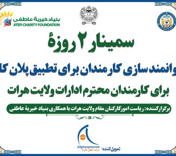 سمینار دو روزه «فرایند تصمیمگیری مؤثر و حل مسئله در محیط کار» در هرات برگزار شدAtefi Foundation Media Officerدسامبر 2, 2025سمینار دو روزه ای تحت عنوان «فرایند تصمیمگیری مؤثر و حل مسئله در محیط کار» به تاریخ ۱۰ و ۱۱ ... Read More